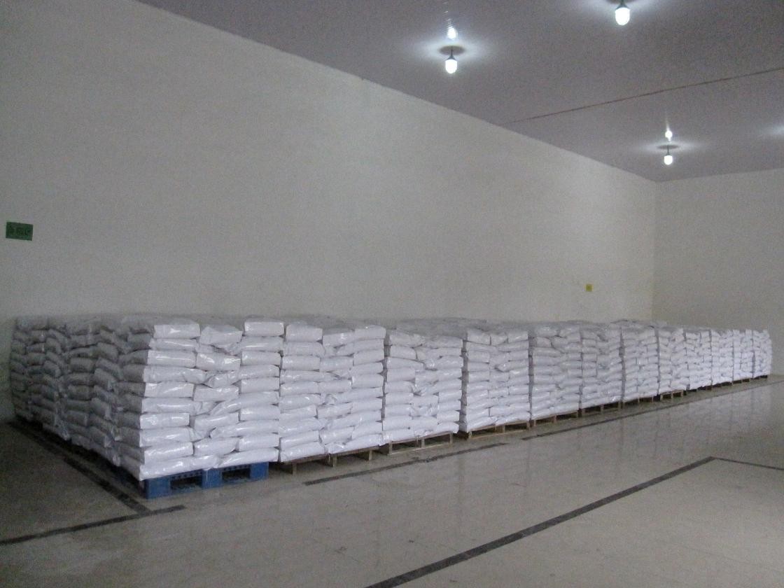 應貯存于干燥、陰涼通風處,不與酸、堿混合??膳c干泥粉攪拌撒入。